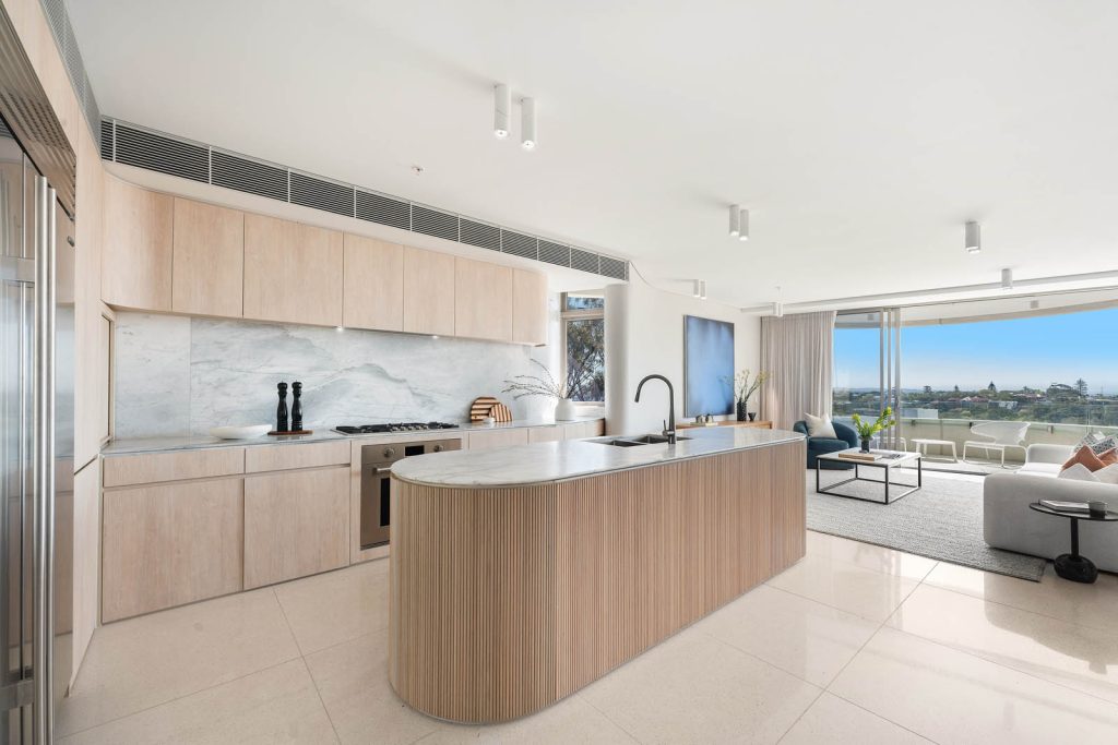 This unique block of 15 residences boasts views of the harbour and Sydney’s skyline. The nominal elliptic floorplates, common rooftop terrace and quality finishes provide architectural simplicity and sophistication to the convenient lifestyle.